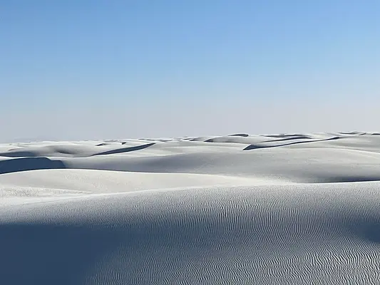 Az Egyesült Államokban található White Sands Nemzeti Park egészen más irányból sokkol. A vakítóan fehér dűnék nem homokból, hanem gipszből állnak, és a világ legnagyobb ilyen képződményét alkotják. A csendes, hullámzó felszín inkább emlékeztet egy fagyott óceánra, mint sivatagra.
