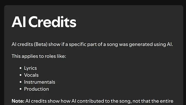 A Spotify csendben elindított egy új kísérleti funkciót, amely a mobilalkalmazás Song Credits szekciójában jelzi, ha egy felvétel elkészítésében mesterséges intelligencia vett részt. A cél egyértelmű: nagyobb átláthatóságot adni egyre komplexebb zenei gyártási folyamatokban.